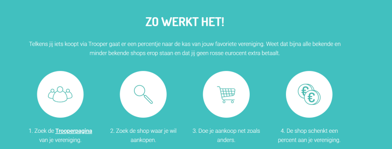 Wist je dat je onze zwemclub kan steunen, gewoon door je online aankopen te doen via de website van Trooper, een Vlaams platform dat verenigingen steunt? Lees hieronder hoe het werkt, en surf naar onze pagina op Trooper, of download de Trooper-bot in je webbrowser. De bot zal je automatisch herinneren telkens je op een Troopershop komt.